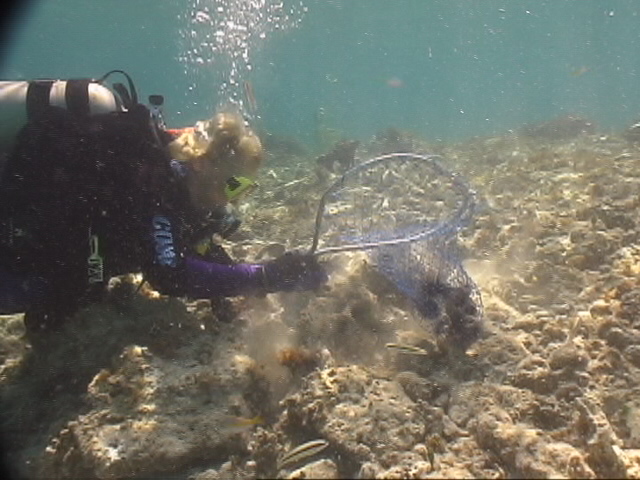 NOAA'S FLORIDA KEYS NATIONAL MARINE SANCTUARY APPROVED URCHIN RELOCATION PLAN Judy Halas collections urchins for relocation!!!! Martin Moe (SAC) and Ken Nedimyer (SAC) were the driving force behind this project |